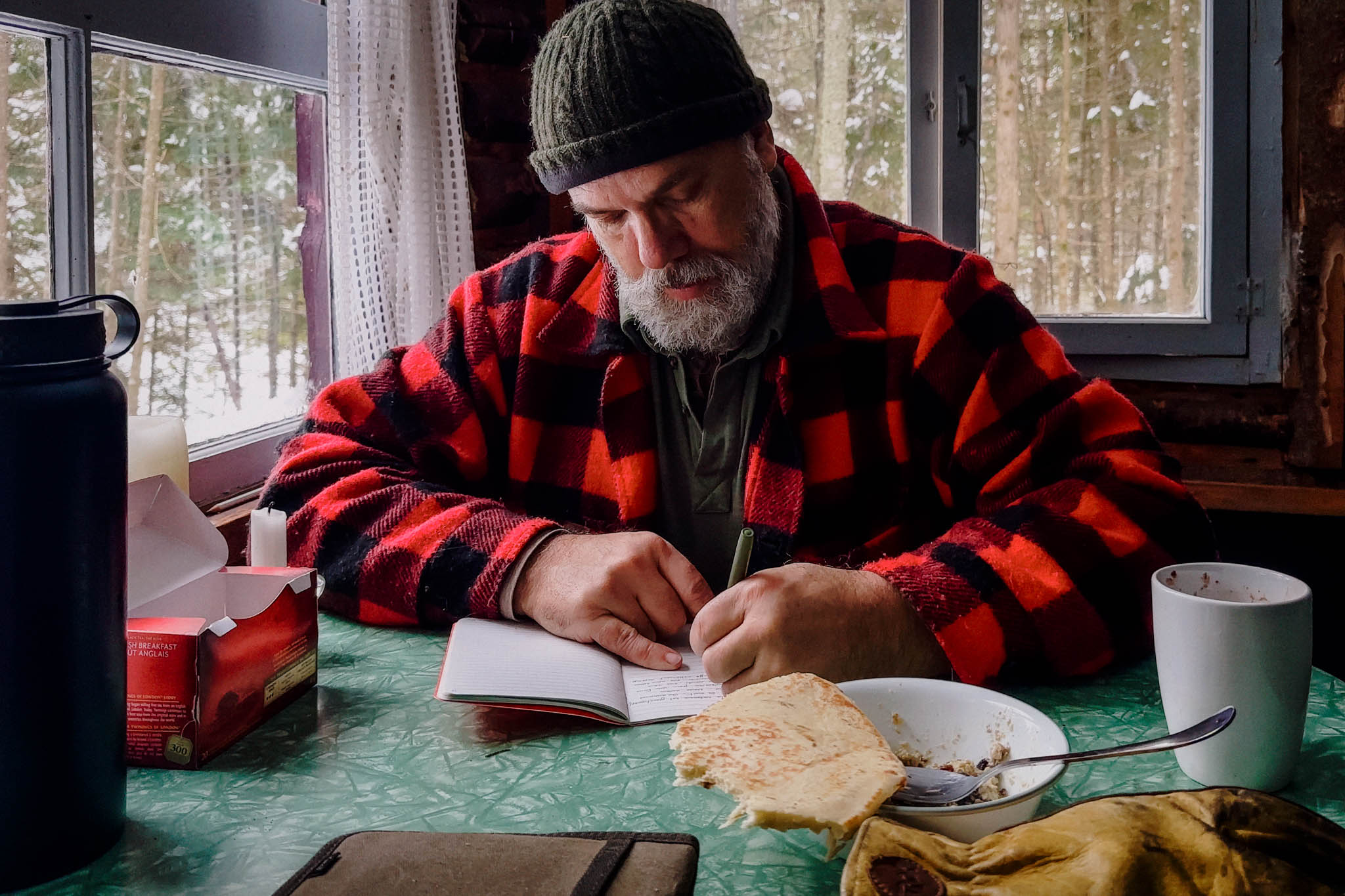 Mes carnets de terrain en temps réel. Quand je pars quelques jours en territoire - toundra, forêt boréale, berges du fleuve - je note tout. Les traces dans la mousse. La lumière à 4h du matin. La rencontre inattendue avec un renard. Ces observations brutes, je les partagerai telles quelles, sans les polir en récit destiné à l'infolettre. C'est le matériau premier, l'instant capturé avant qu'il ne devienne littérature. Parfois, je vous montrerai comment une note de terrain devient un passage d'un chapitre - l'alchimie entre l'observation et l'écriture.