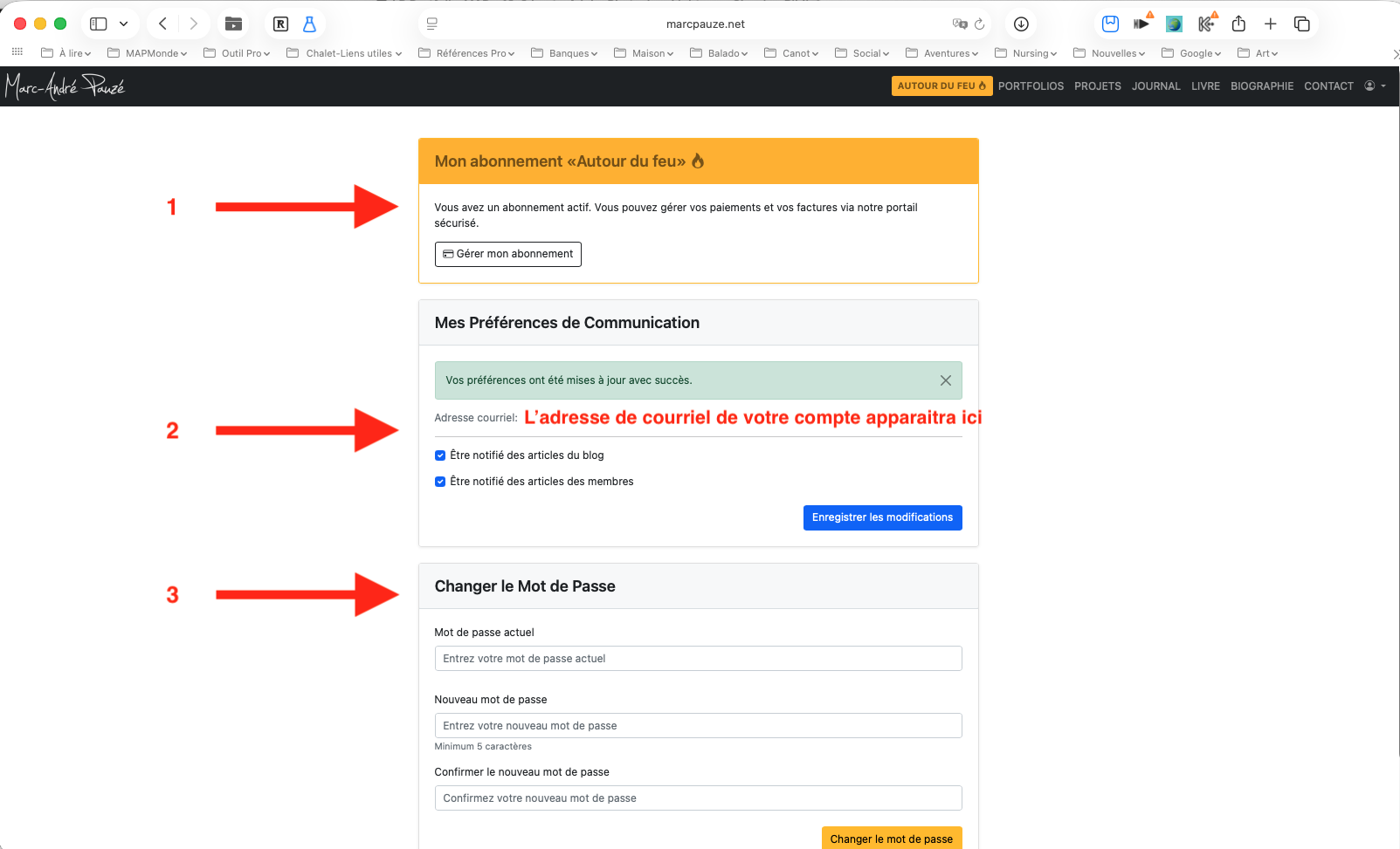 Gérer son compte sur marcpauze.net