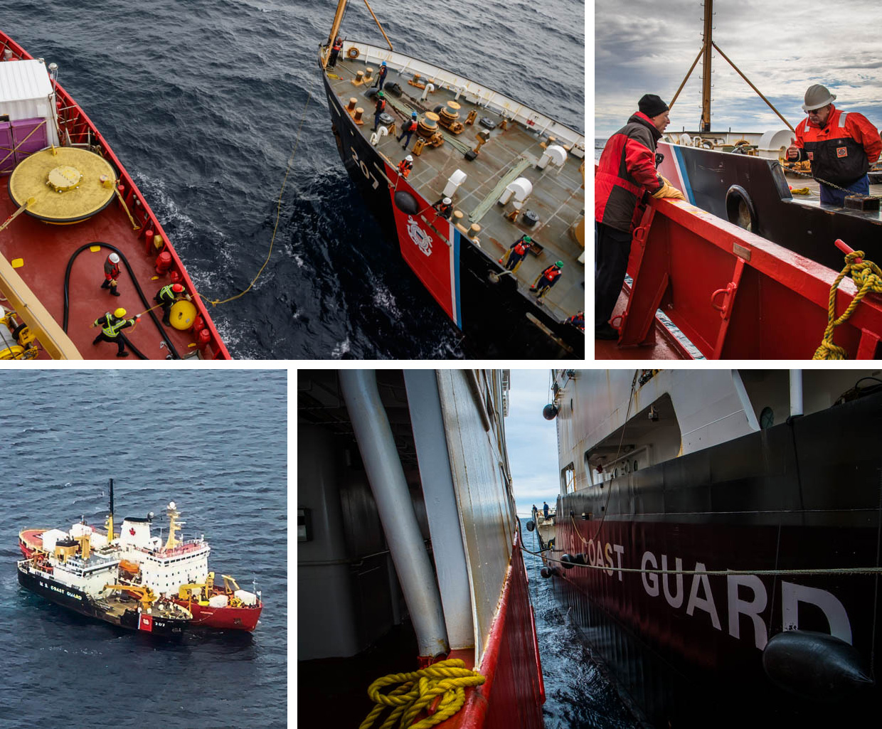 Opération d'assistance à la Garde côtière amércaine (2017). L'Amundsen a dû se détourner de ses activités scientifiques pour porter assistance au Cutter Maple. Puis un autre brise-glace canadien l'a escorté vers la mer de Baffin.