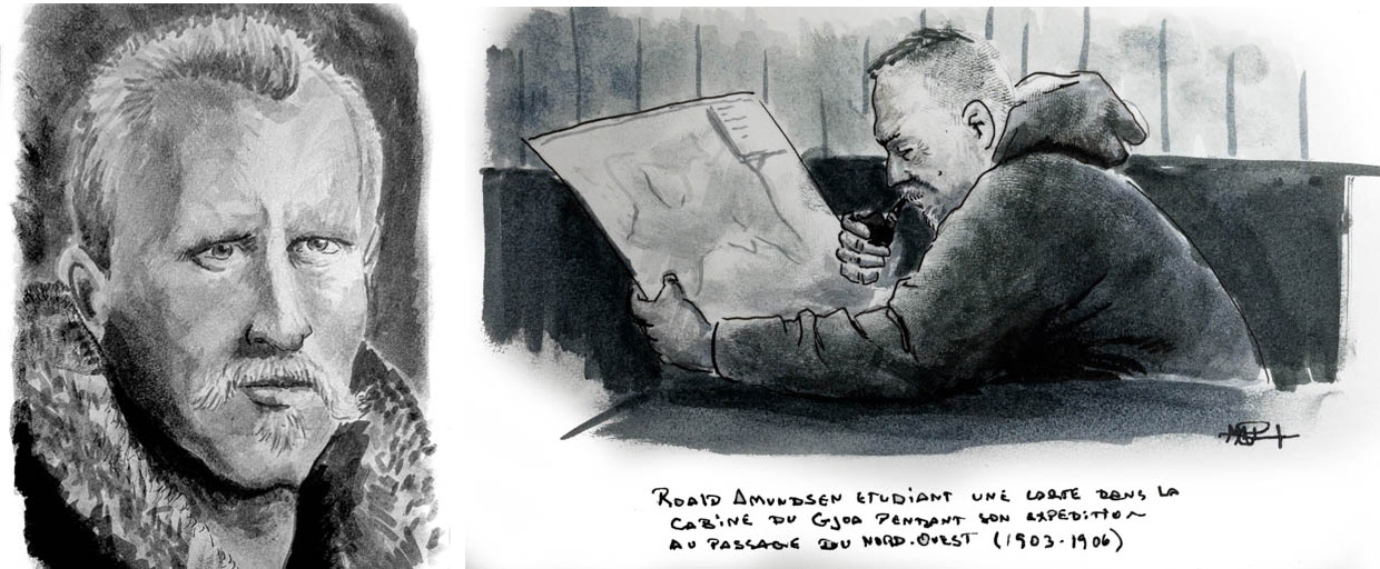 Fridtjof Nansen (à gauche) et Roald Amundsen (à droite) - Illustrations M-A Pauzé 2020