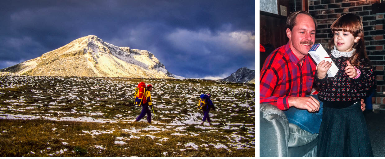 Dans les rocheuses canadiennes (septembre 1988) et avec sa filleule Joanie (Noël 1990)