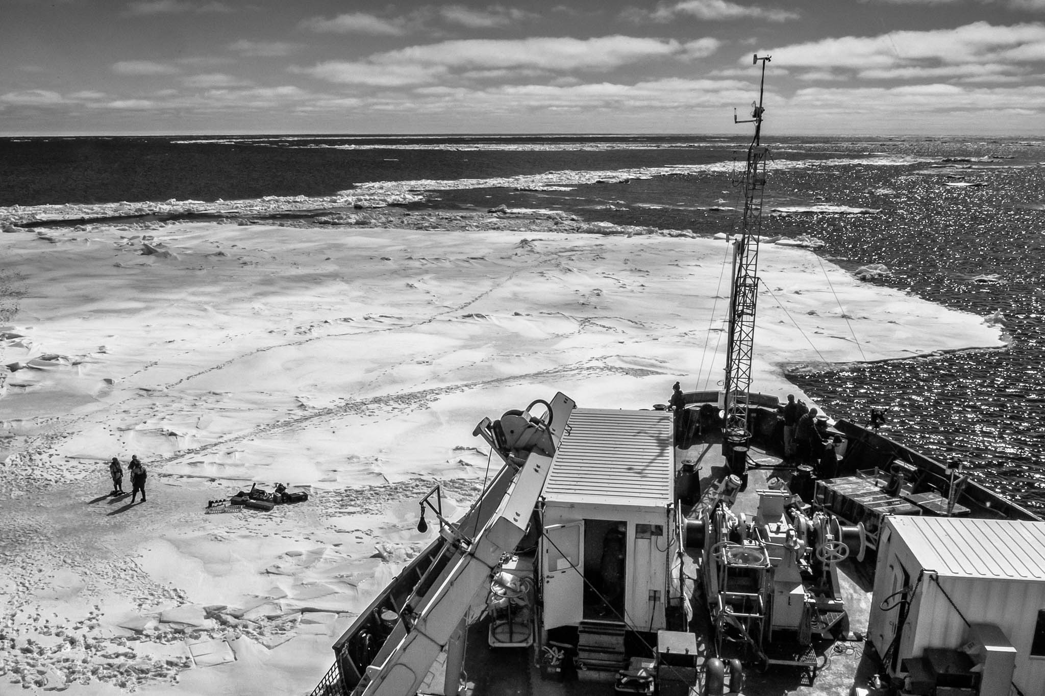 24 mai 2018 — baie d’Hudson. Un groupe de scientifiques déplace leurs instruments sur la banquise.