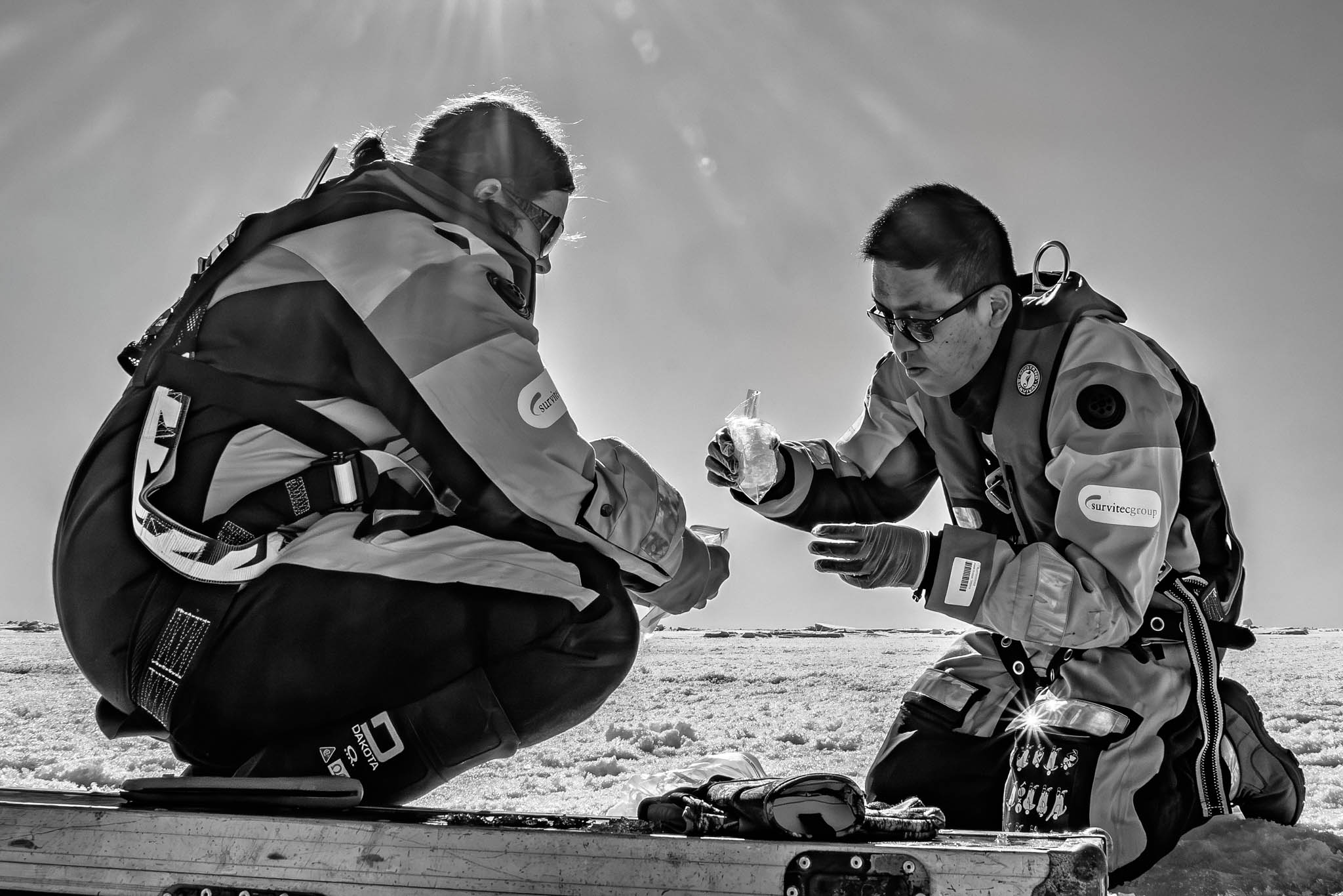 03 juin 2018 — banquise de la baie d’Huson. Janghan Lee manipule délicatement des échantillons de glace pour analyser les cycles biogéochimiques des éléments essentiels dans l’océan et l’écophysiologie photosynthétique et nutritive du phytoplancton marin.
